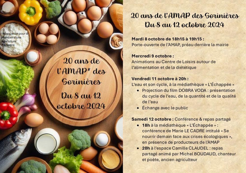 L’AMAP des Sorinières fête ses 20 ans du 8 au 12 octobre 2024..