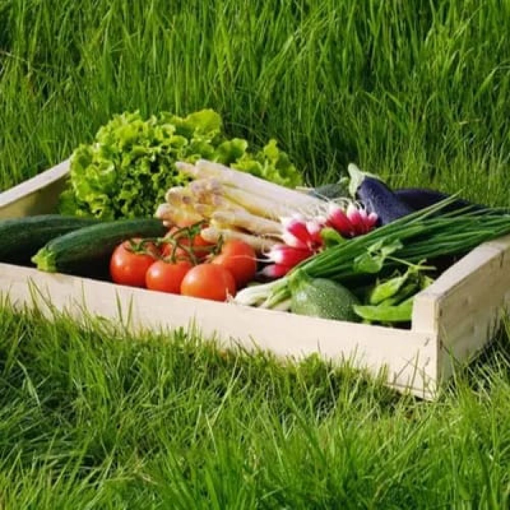 Produits: légumes, pains, oeufs, fromages, poisson, poulet, galettes, miel, porc