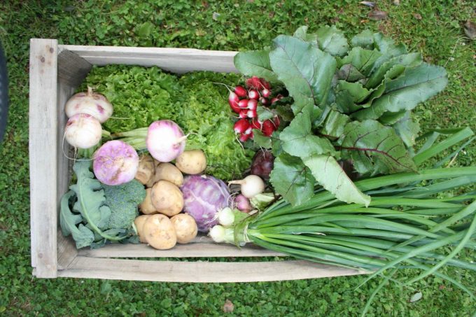 Nous cultivons sur l’ensemble de l’année une quarantaine de légumes de saison: pommes de terre, carottes, poireaux, choux, tomates, melons, aubergines, …