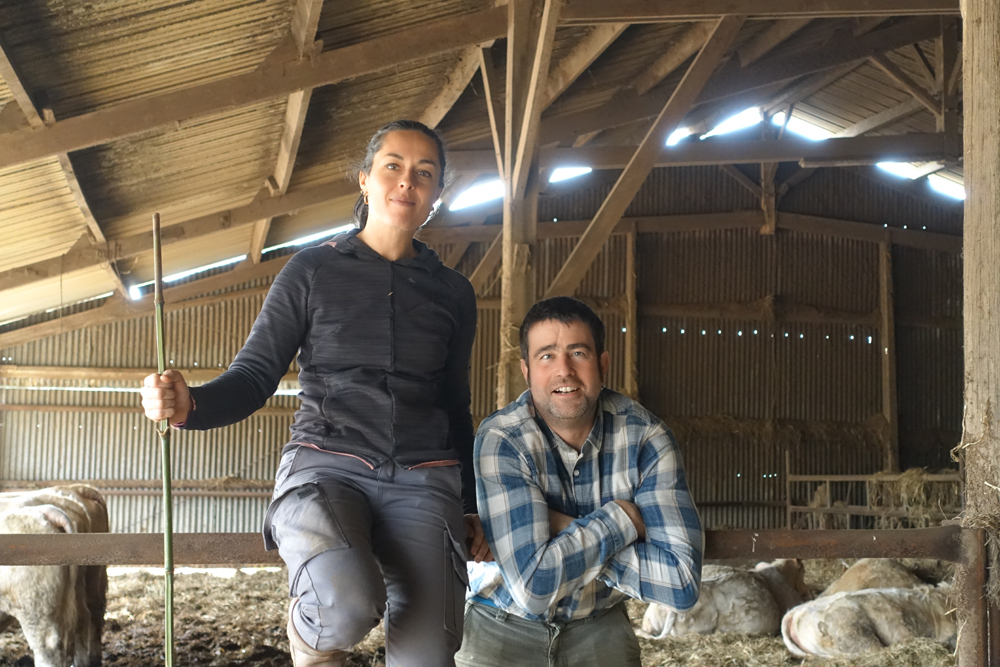 Nous sommes 2 associés, Hélène et François, amoureux de la nature et passionnés par l’élevage. Nous sommes installés à St Mars de Coutais, près du Lac de Grand Lieu, et nous avons un troupeau de 40 vaches charolaises et un cheptel de 6 truies. Nous élevons nos truies en plein air en agriculture biologique. Les porcelets, une fois sevrés, sont élevés sur paille et sont nourris avec un aliment BIO. La durée d’engraissement (9 mois), les conditions d’élevage de nos cochons garantissent une viande savoureuse, persillée et saine. Nous vendons nos produits exclusivement en vente directe.