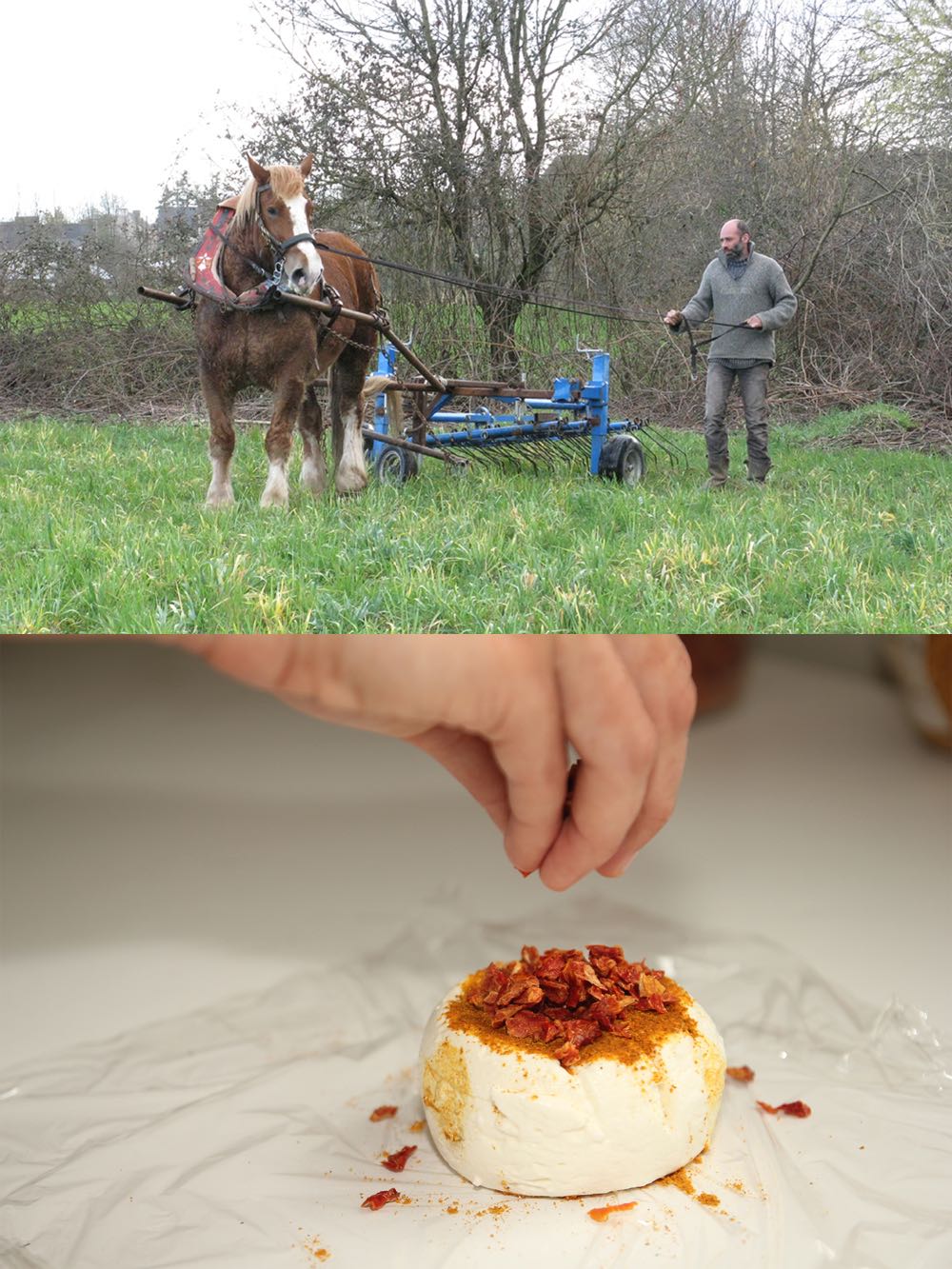 - Traction animale : Le travail du sol et des cultures (non labour, techniques culturales simplifiées) est réalisé autant que possible en traction animale grâce à nos deux chevaux de traits Bretons.